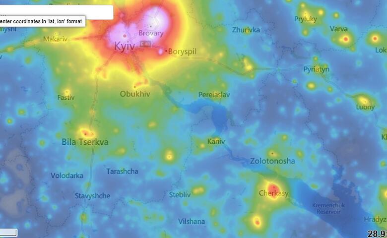 Обухів дуже добре демонструє це на карті lightpollutionmap.info.