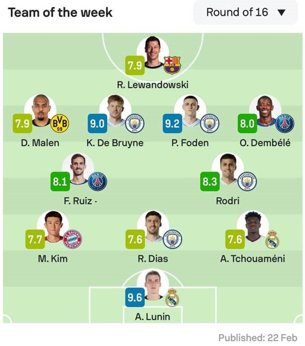 Голкіпер Реала Андрій Лунін увійшов до списку найкращих гравців перших матчів 1/8 фіналу Ліги чемпіонів.
