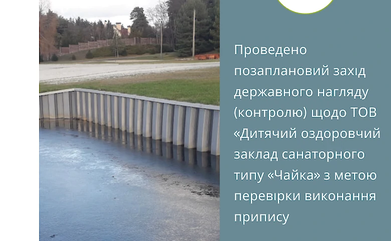 Державні інспектори Столичного округу провели позапланову перевірку ТОВ «Дитячий оздоровчий заклад санаторного типу «Чайка» для контролю виконання припису, виданого 13 лютого 2024 року.
